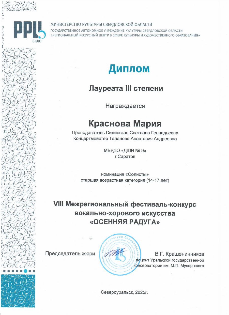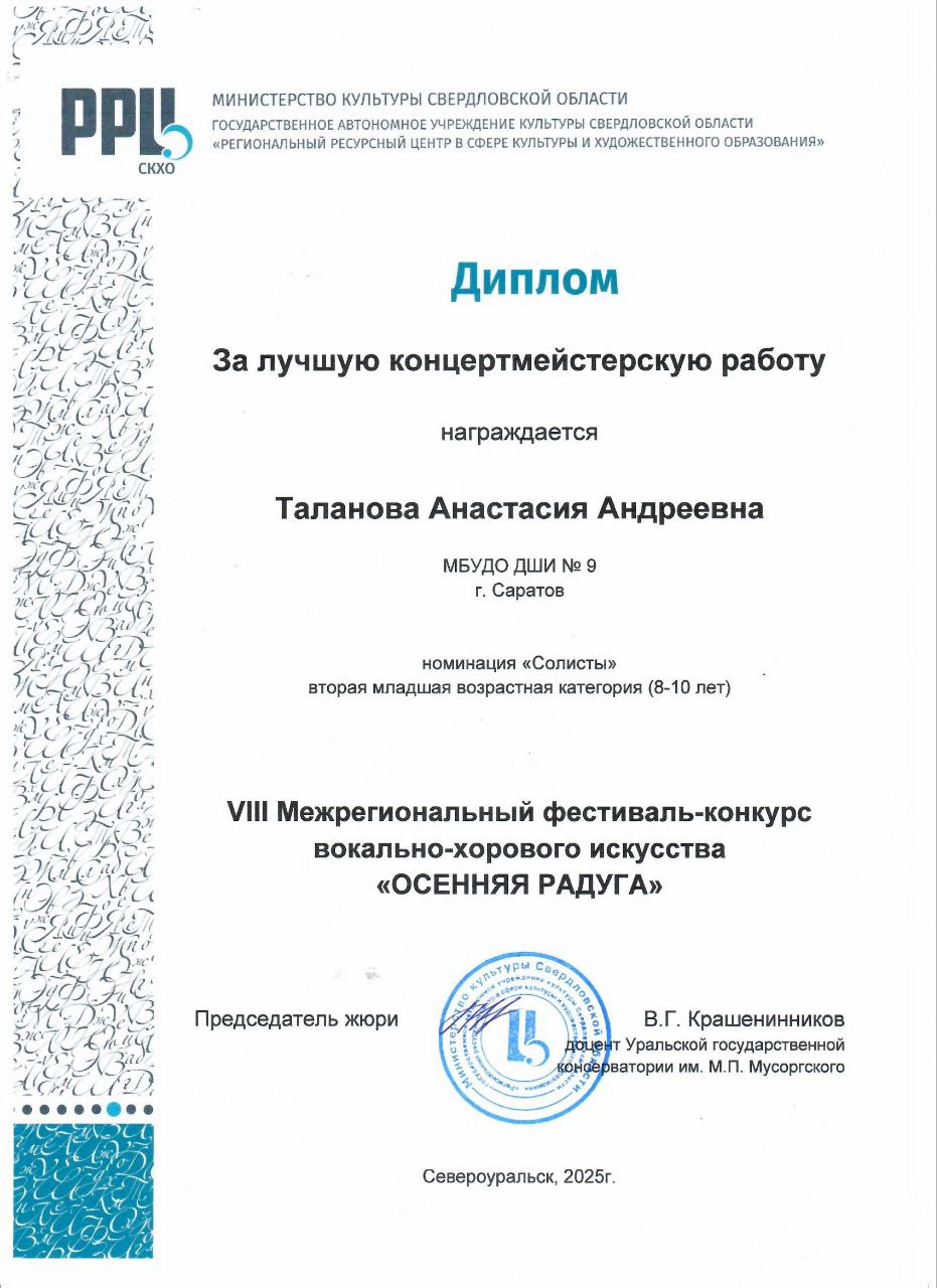 - Специальный диплом получила Анастасия Андреевна Таланова.
