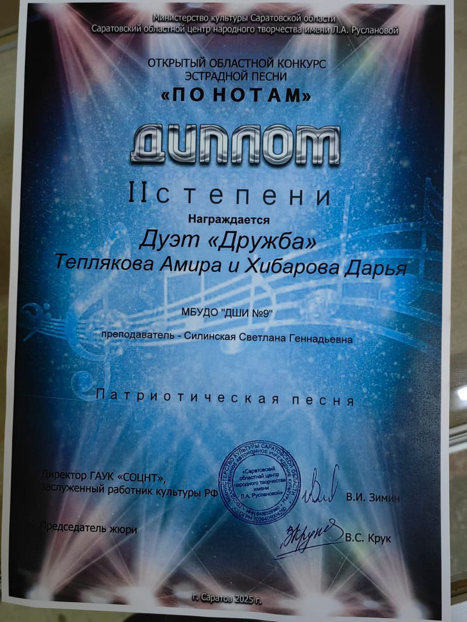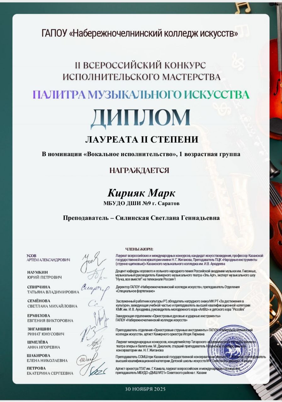 - Виссарионова Лида ( саксофон) - Диплом Лауреата 2 степени;