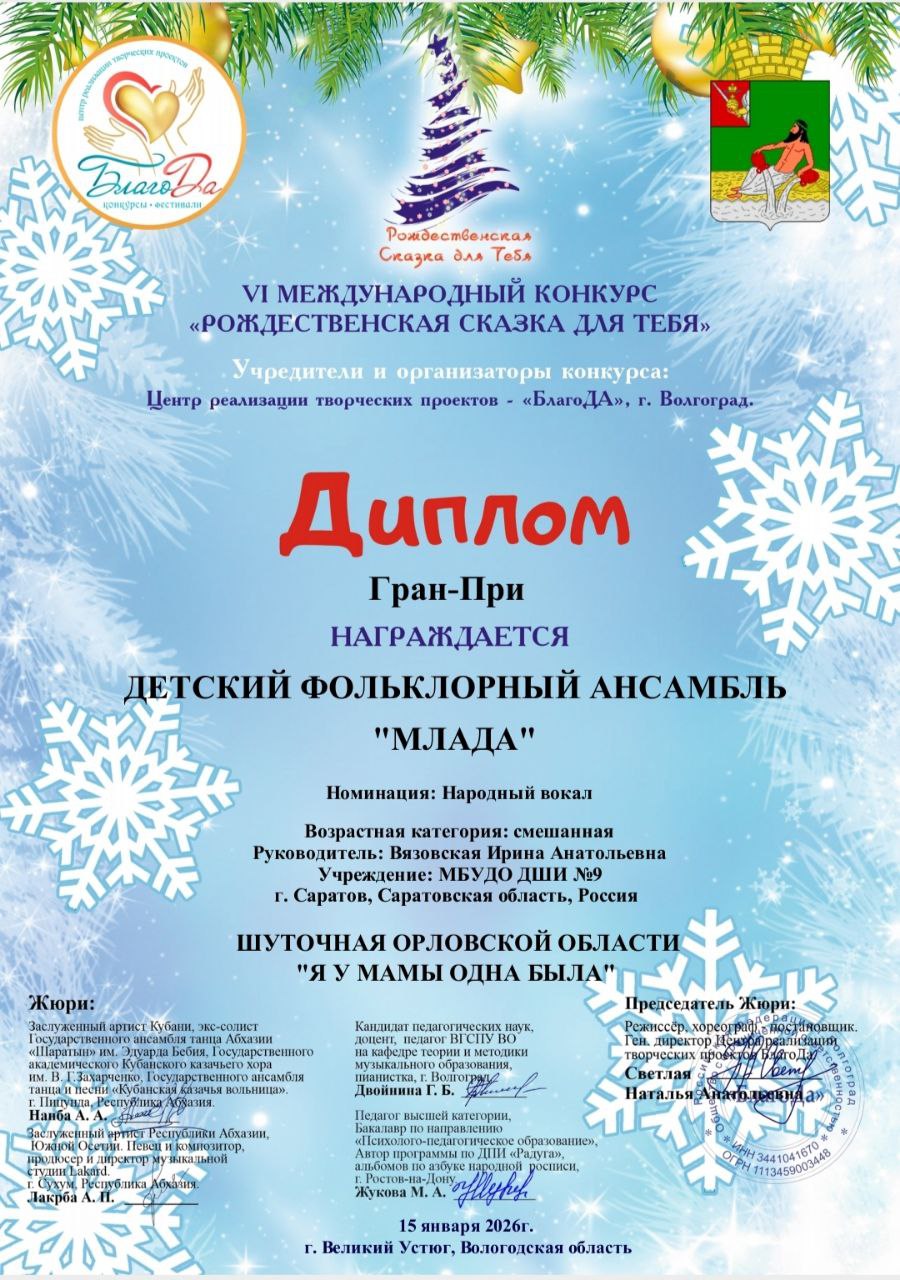 Участники ансамбля, в составе 13 талантливых ребят, представили своё творчество жюри в Малом зале Саратовской государственной консерватории имени Л.В. Собинова. Их выступление заслуженно отмечено Дипломом Лауреата II степени.