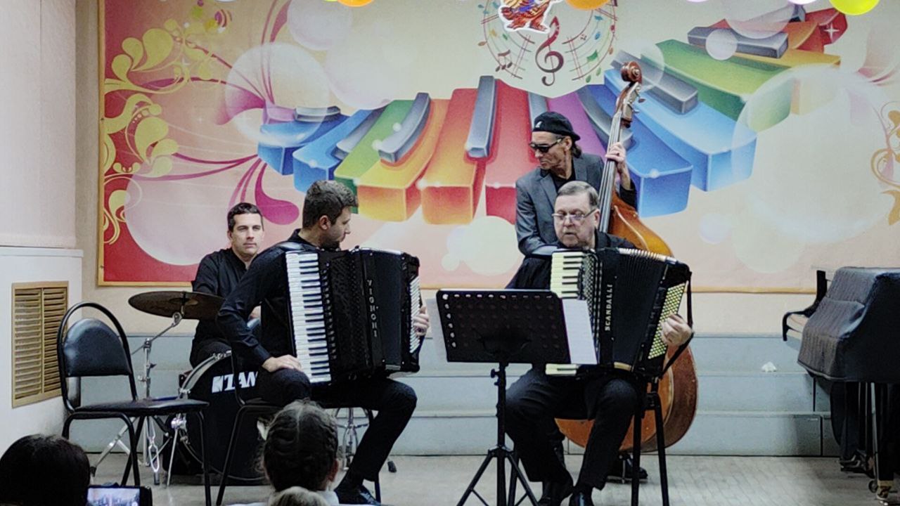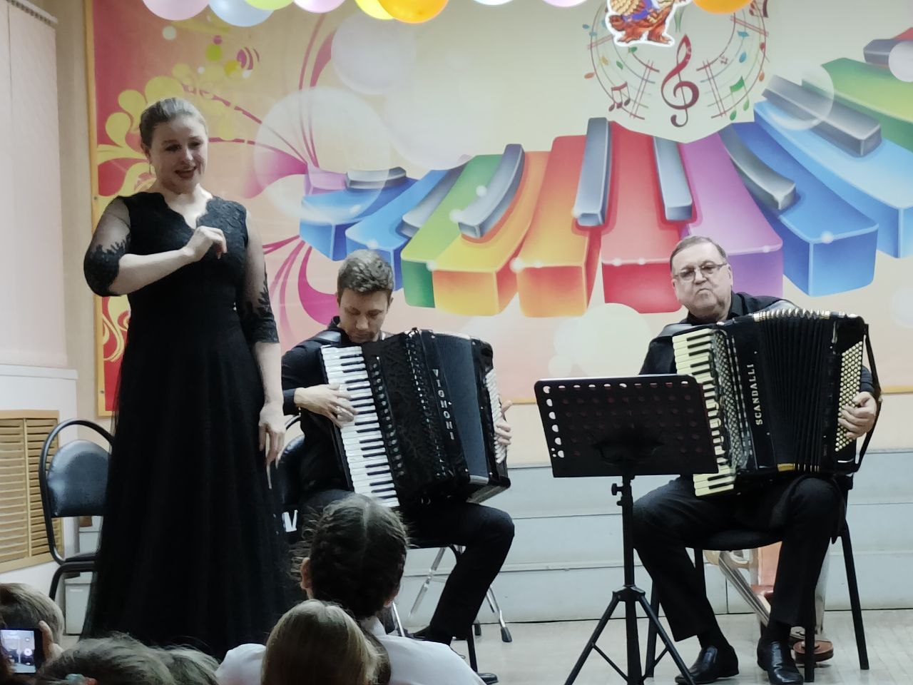 В концертном зале нашей школы прошел яркий концерт, организованный артистами Саратовской областной филармонии имени А. Шнитке. Мероприятие было посвящено миру гармоники – аккордеону, баяну и гармонике.