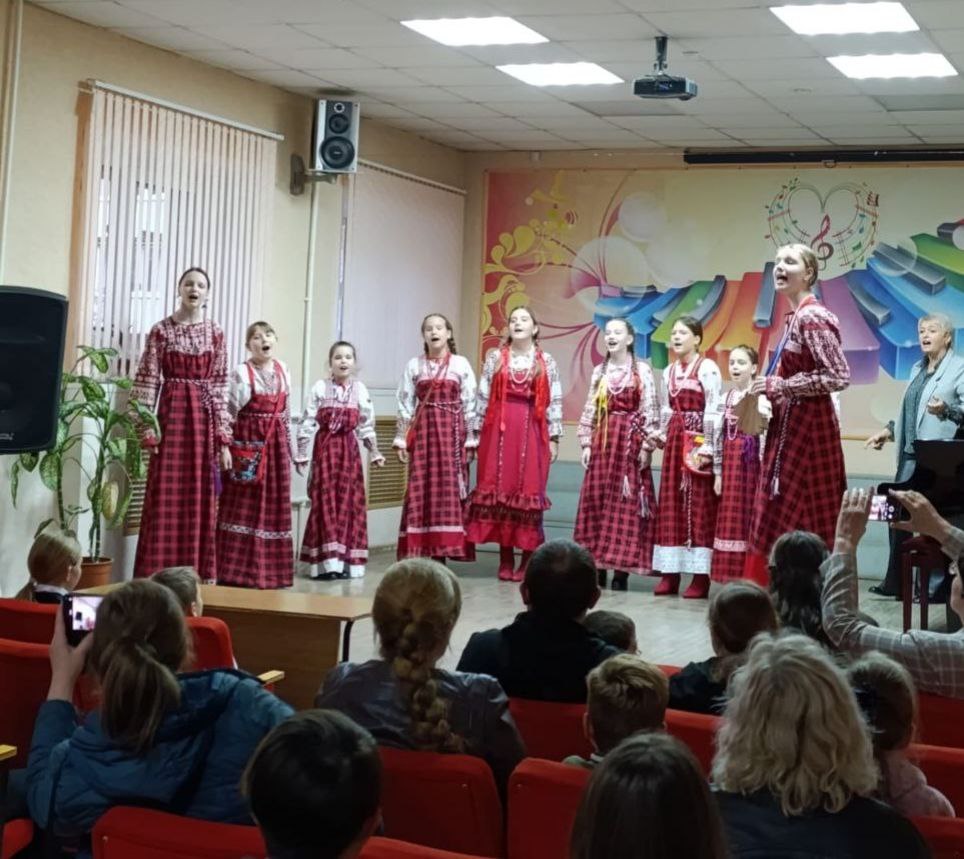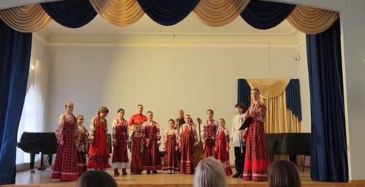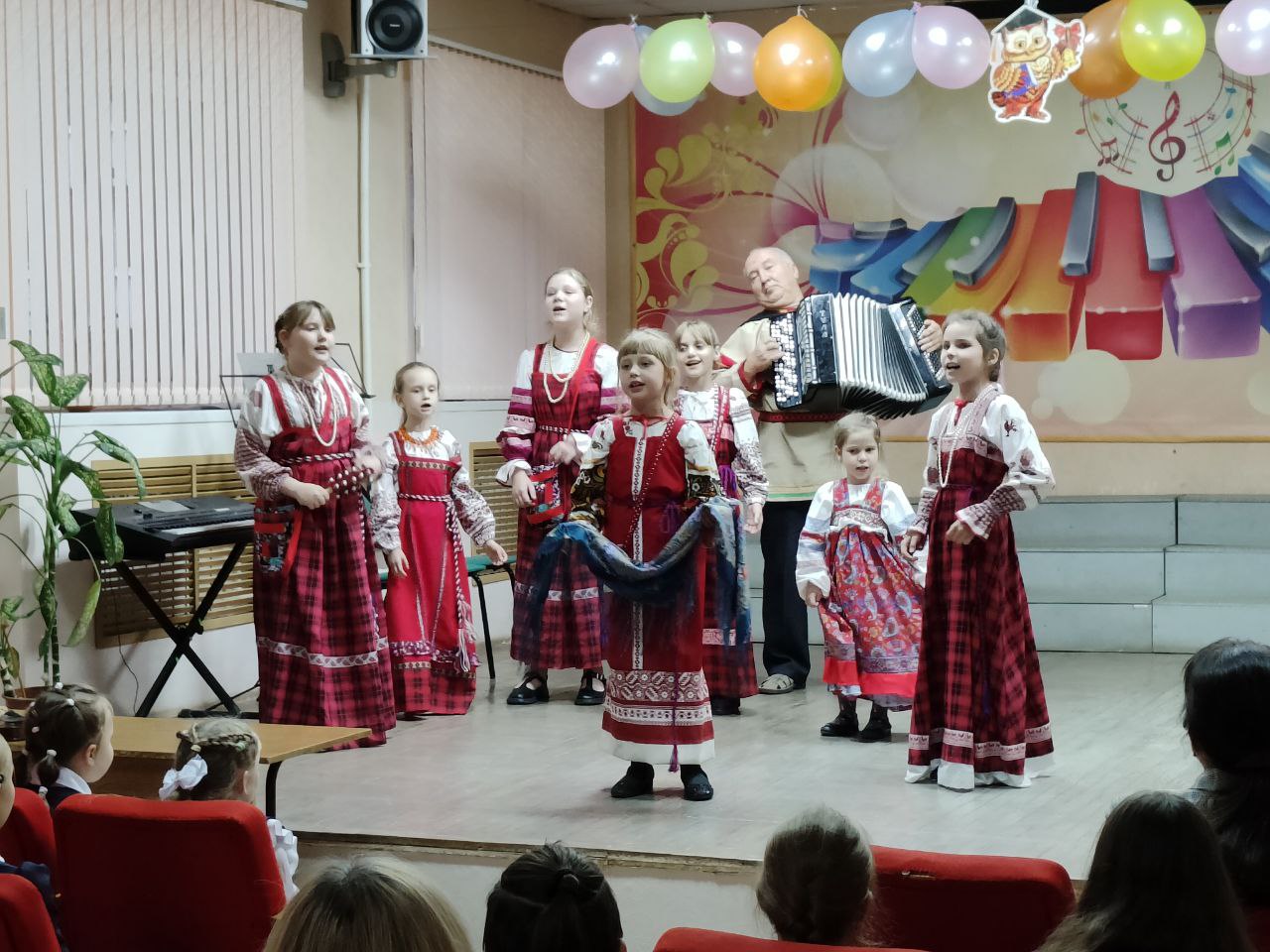 В концертном зале нашей школы состоялся академический концерт учащихся фольклорного отделения. В концертной программе прозвучали композиции: народные песни разных жанров, авторские произведения военной тематики. Песни были исполнены в сольном и ансамблевом исполнении с элементами народной хореографии.