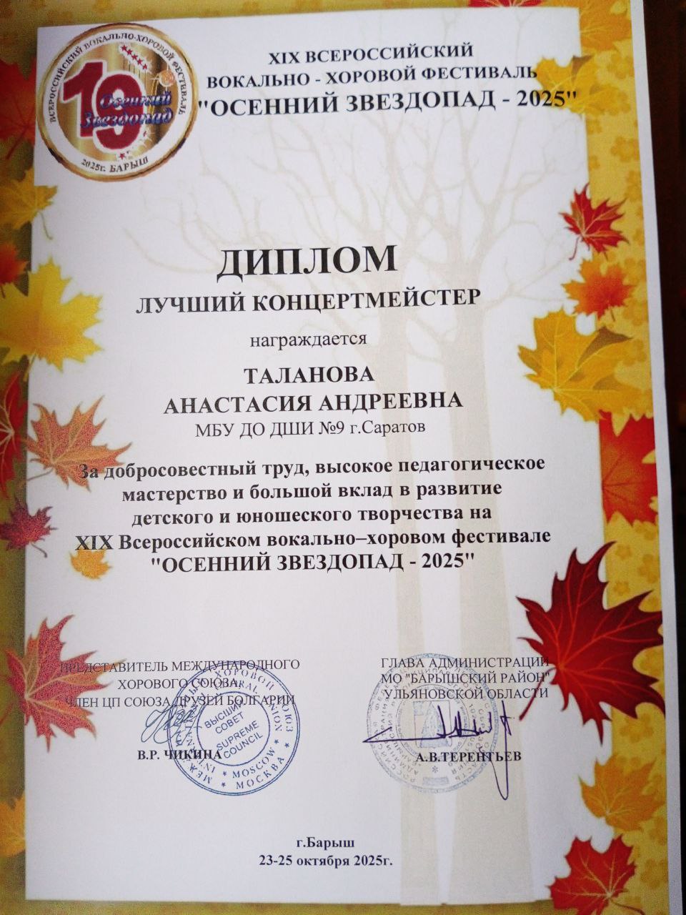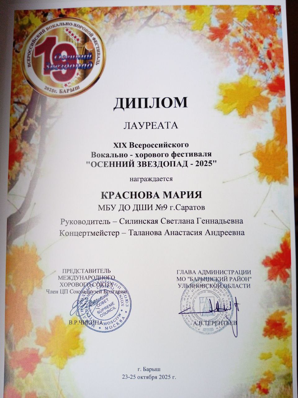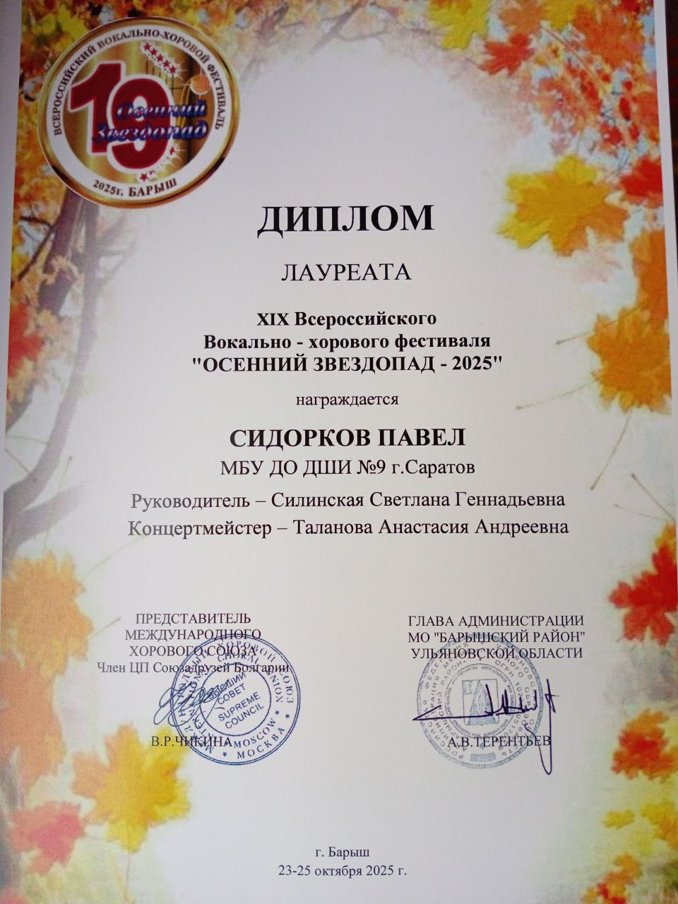 В г. Барыш Ульяновской области состоялся XIX Всероссийский вокально-хоровой фестиваль "Осенний звездопад -2025".