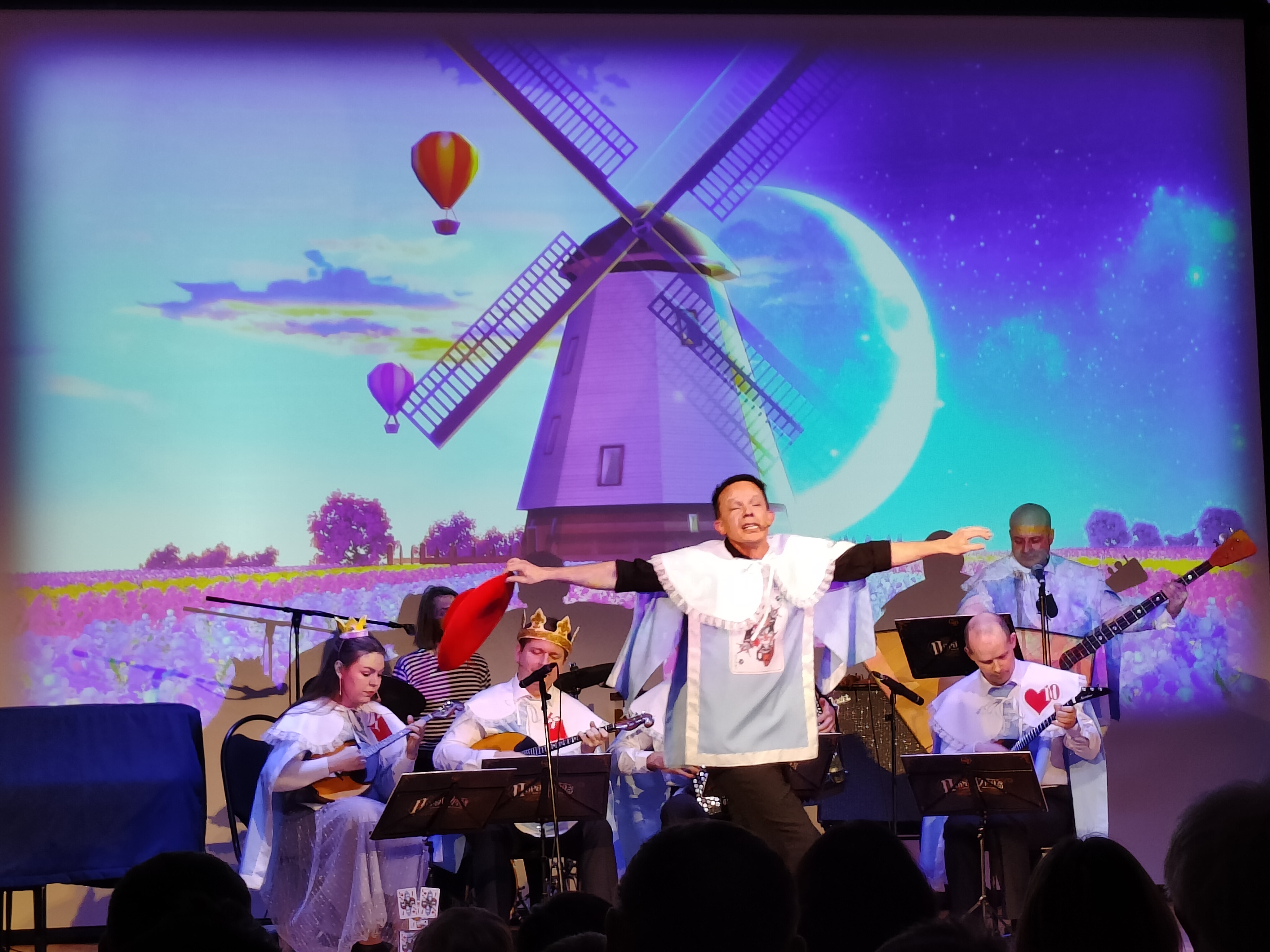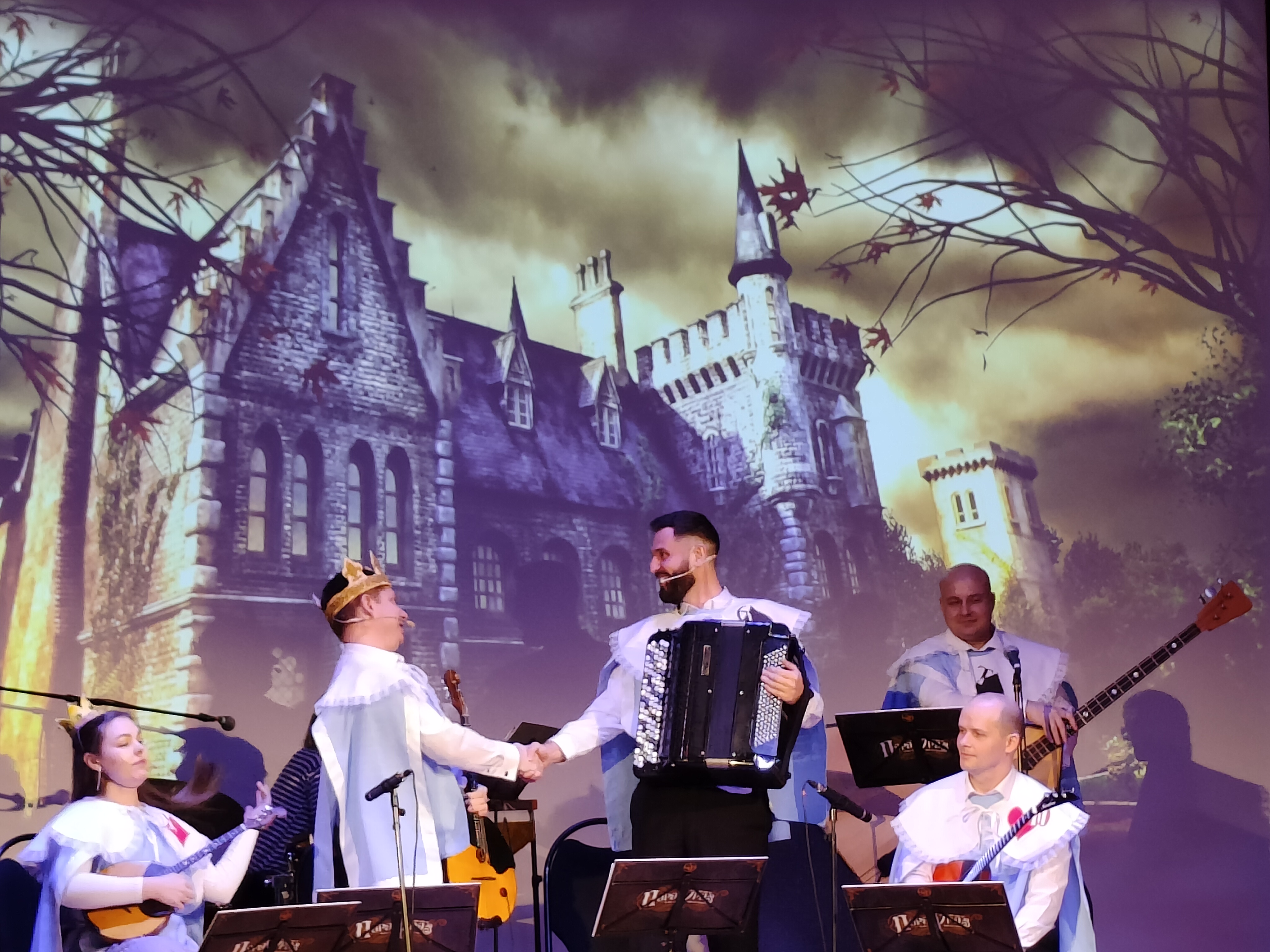 Каждый участник коллектива выступил в роли своего персонажа, исполняя сольные партии голосом и играя на инструментах одновременно. Такое сочетание вокального мастерства и виртуозной игры на народных инструментах демонстрирует высокий уровень музыкантов.