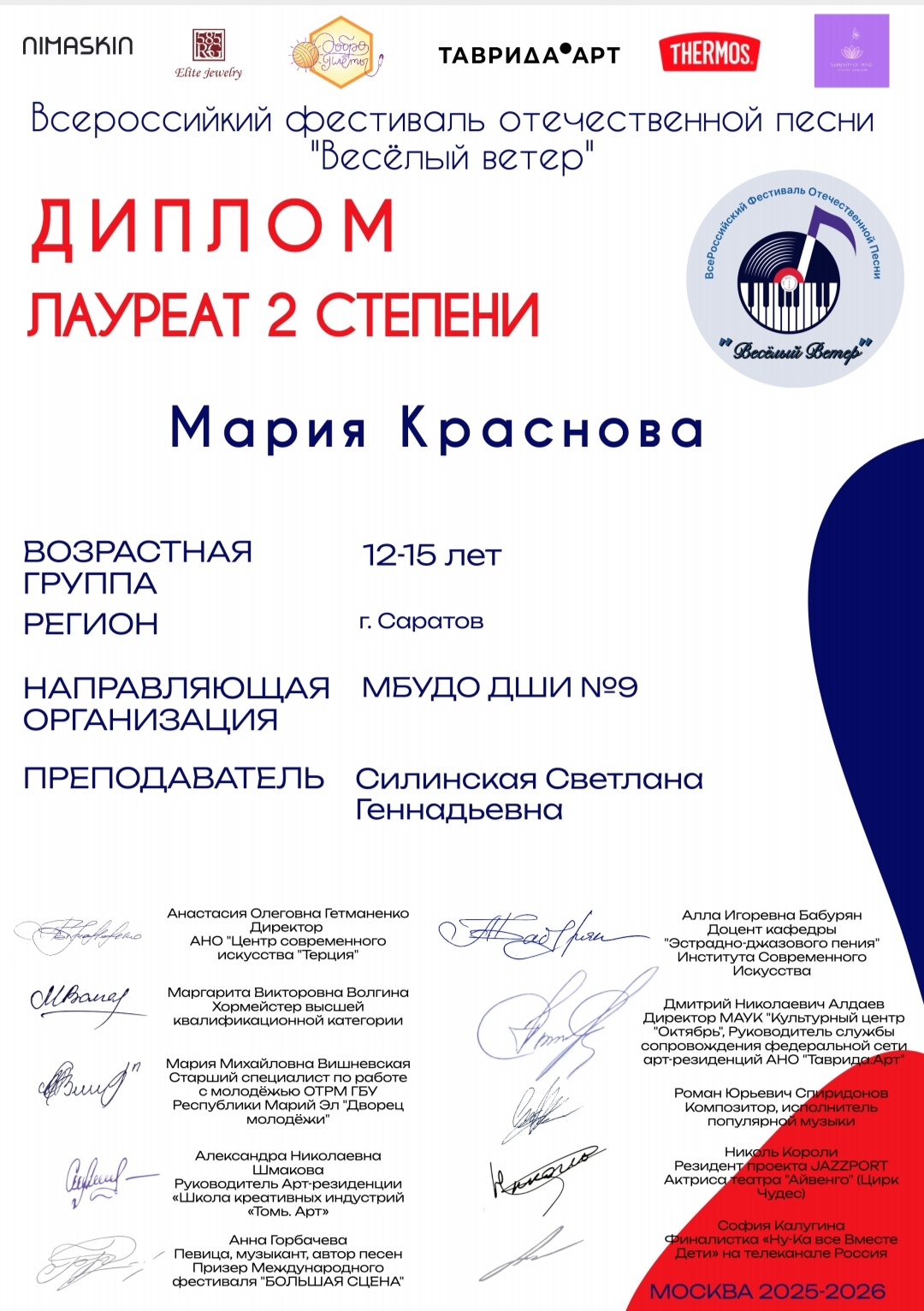 Мы поздравляем Марию, а также Светлану Геннадьевна и Анастасию Андреевну с замечательным результатом — диплом Лауреата II степени и желаем новых ярких побед и вдохновения в творческой деятельности!