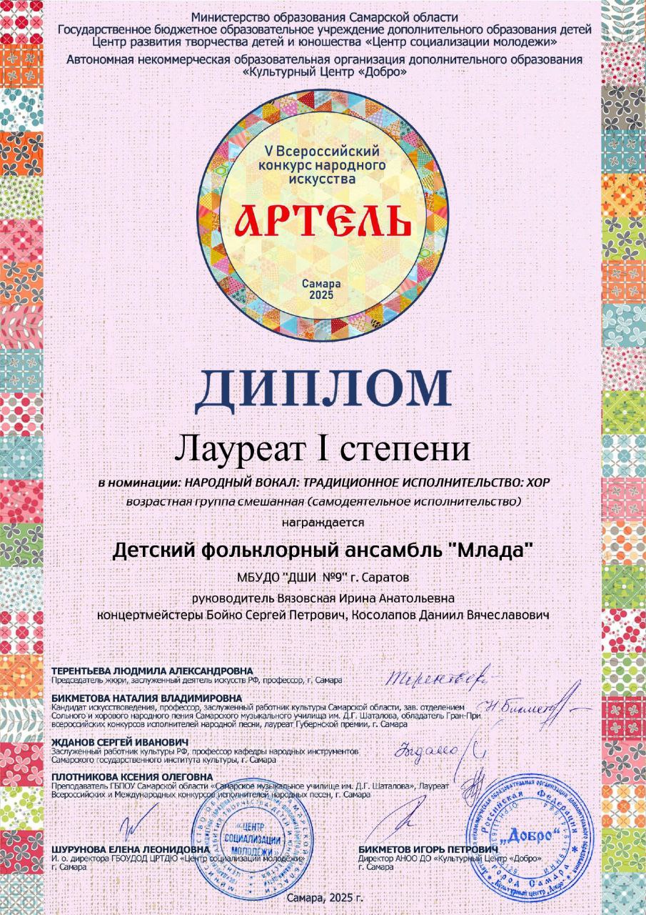 Ансамбль «Млада», состоящий из 12 участников, удостоен звания лауреата I степени.